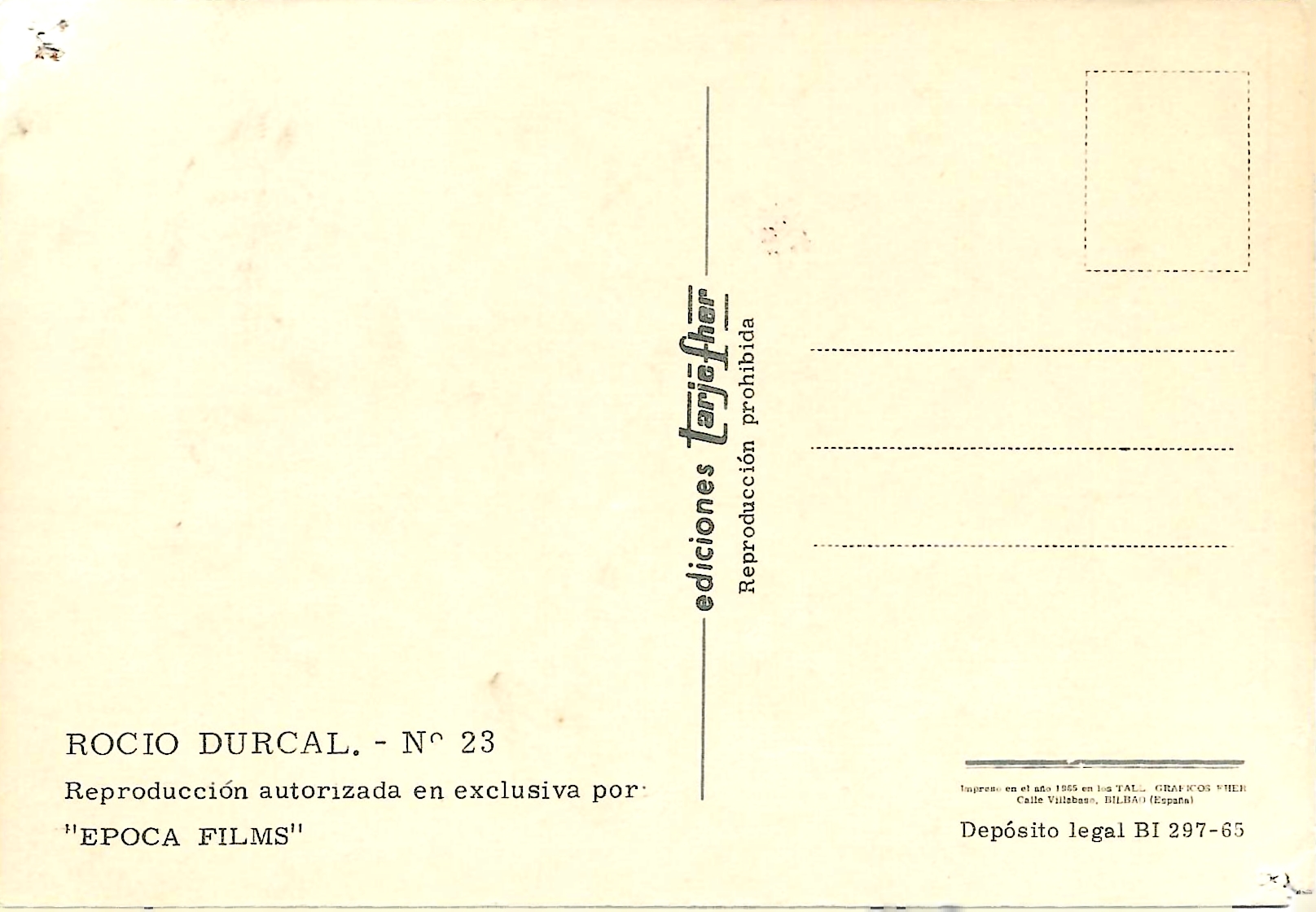 Postal a color de Rocío Durcal de los años 60. De la empresa Tarjefher. Impreso en España.