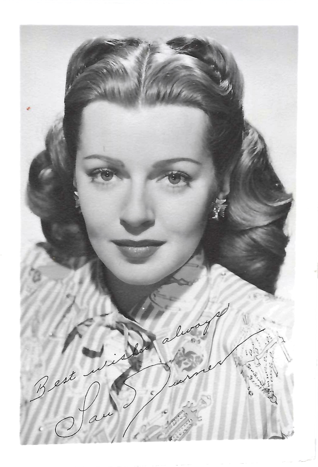 Fotografía en blanco y negro de la actriz estadounidense Lana Turner de los años 40.