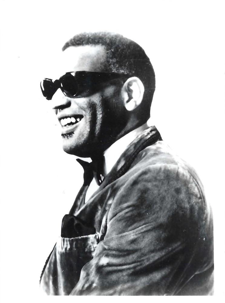 Fotografía en blanco y negro de Ray Charles de la promoción «Hits that made history Nº 91»