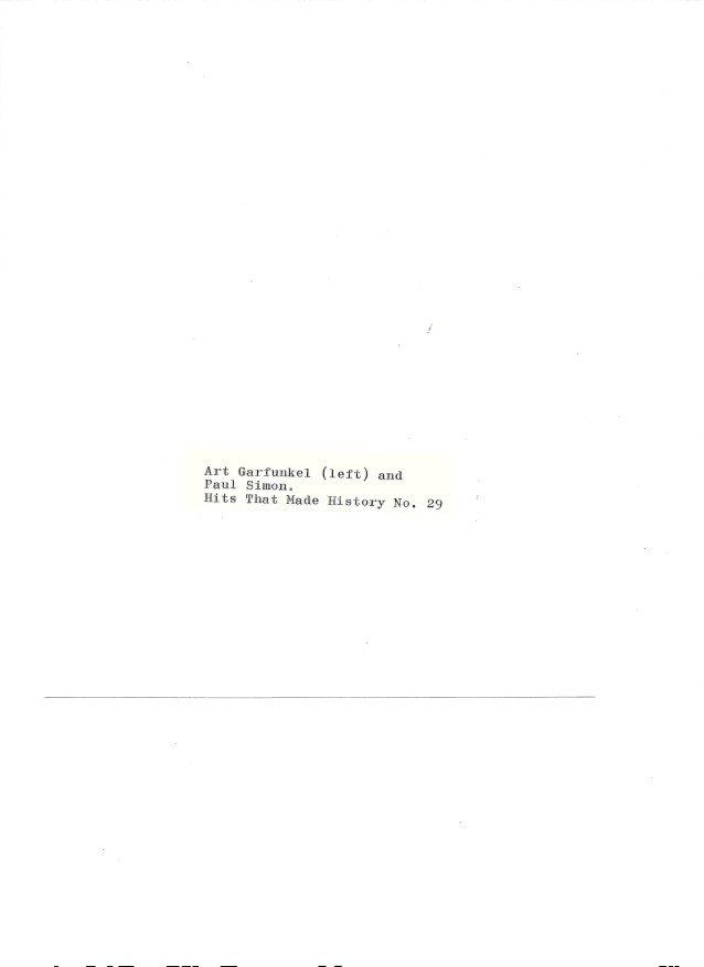 Fotografía en blanco y negro de los cantantes Art Garfunkel y Paul Simon de los años 60. Fue una de las fotos usadas en el «Hits that make history»
