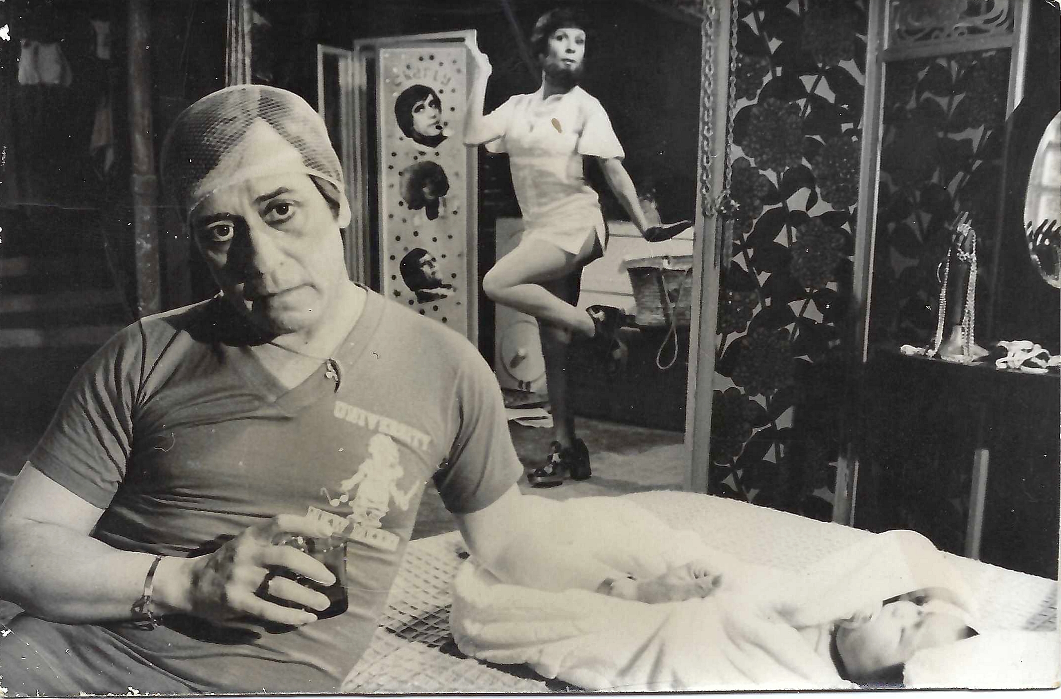 Fotografía en blanco y negro de Jose Luis López Vázquez y Lina Morgan de la película Una Pareja Distinta. Año 1974